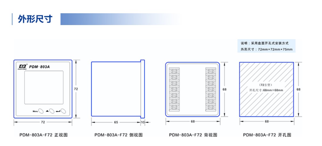 丹东华通三相智能电流表PDM-803A-F72-DSC-C-AC220V-5A
