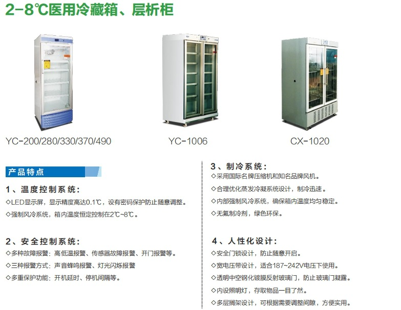 ◎ 箱内直流风机,风道设计,箱内温度均匀稳定,恒定在2℃~8℃。
