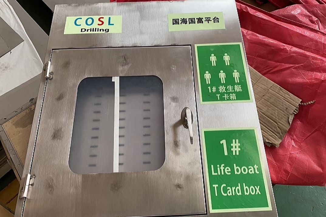 T卡箱外面和卡槽板上均喷有中文“T卡箱”及英文“T card box”标识,美观大方,箱口做风雨密处理,箱门边安装防水密封条,进行密封防水;T卡箱整体喷塑处理(防锈防腐),内部卡槽板激光开插卡槽(卡槽数量客户指)。