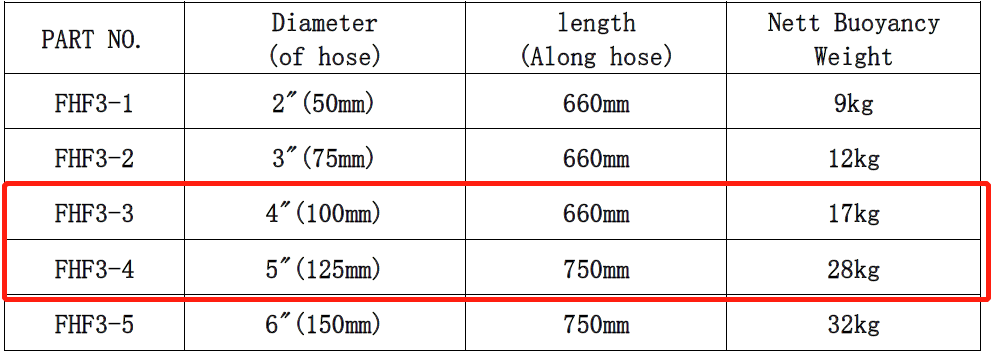 用5"管线安装;浮力块长度750mm;每块净浮力大于28kg;浮力块采用软质浮性材料填充,可弯曲;采用分隔式的填充设计;内部有2条松紧带固定,外部三条可调节的松紧带每固定;两端附带系绳确保安装后收紧;该浮力块须为柔软材质,能紧贴弯曲的管线表面,防止使用时随管线滑脱;浮力块外表面须缝制2条不易脱落的环形反光带