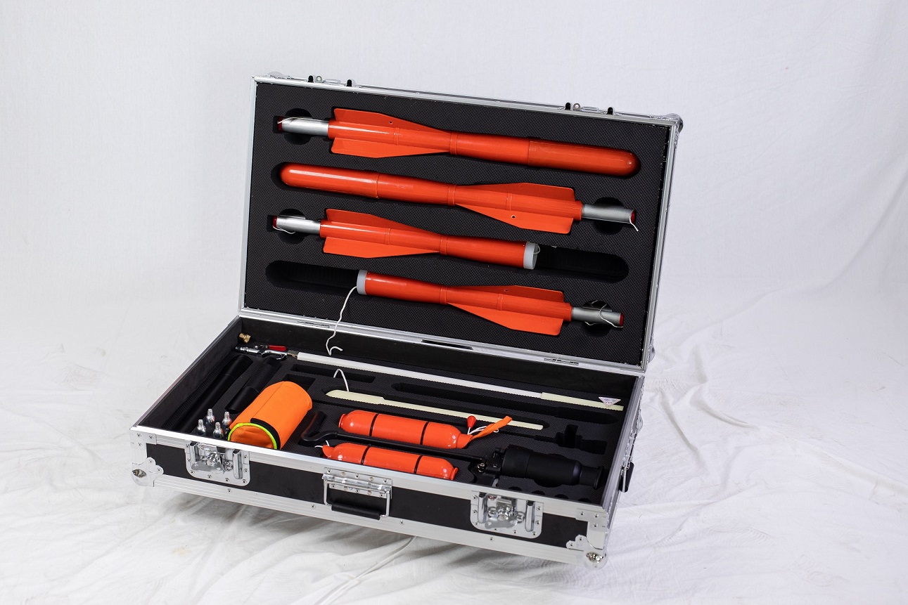 基本配件:一个内置气缸带折叠qiang托的发射体1个;陆用抛绳救援弹2个(内置救援绳),水用救援弹2个(内置救援绳,带自动充气救生圈),训练弹1个,训练绳包1个(装有180米救援绳),吹绳枪1个,60gCO2压缩气瓶8个,17克CO2压缩气瓶4个,触发剂4个,水用保护套2个,空绳包1个,铝合金箱包装,提供质量体系认证 ,提供国家消防检测报告 。