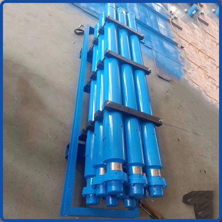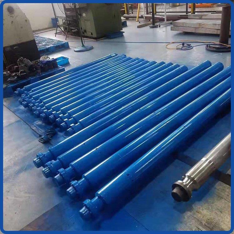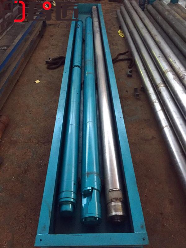潜油电泵机组为细长圆柱体结构,长度可达几十米,标准潜油电泵安装方法:井下部份:电机、保护器、油气分离器、离心泵。泵轴均用花键套连接,外壳用法兰螺栓连接,电泵上电机外壳与支座连接螺纹的接缝处均焊有防倒块,以防止机组短时反转使螺纹倒扣松开。