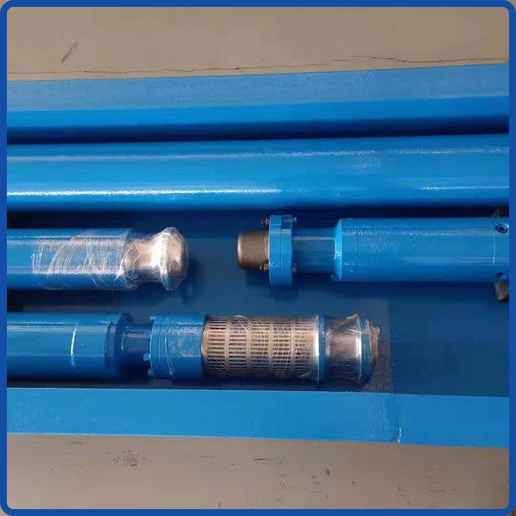 天津智匠泵业潜油电泵说明:智匠泵业潜油电泵组成如下: .井下部份包括:电机、保护器、油气分离器、多级离心泵、电缆、单流阀、泄流阀等。井上部份包括:变压器、控制箱、接线盒等。电泵供电流程包括:地面电网—变压器—控制箱—接线盒—电缆—电机电泵抽油流程包括:油气分离器—多级离心泵—单流阀—泄流阀—油管—井口—输油系统潜油电泵机组为细长圆柱体结构,长度可达几十米,标准潜油电泵安装方法:井下部份:电机、保护器、油气分离器、离心泵。泵轴均用花键套连接,外壳用法兰螺栓连接,电泵上电机外壳与支座连接螺纹的接缝处均焊有防倒块,以防止机组短时反转使螺纹倒扣松开。除上述主要部件外,还有各种附件,这些附件有些是必要的,有些则可以选用安装。所需的最常用的附件有下井安装附件、包装箱、电缆滚筒、电缆滚筒支架、电缆滑轮、下井工具等。