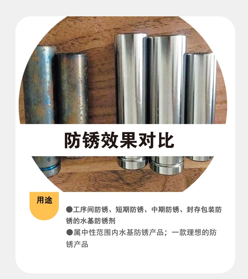 1、工序间防锈、短期防锈、中期防锈、封存包装防锈的水基防锈剂;