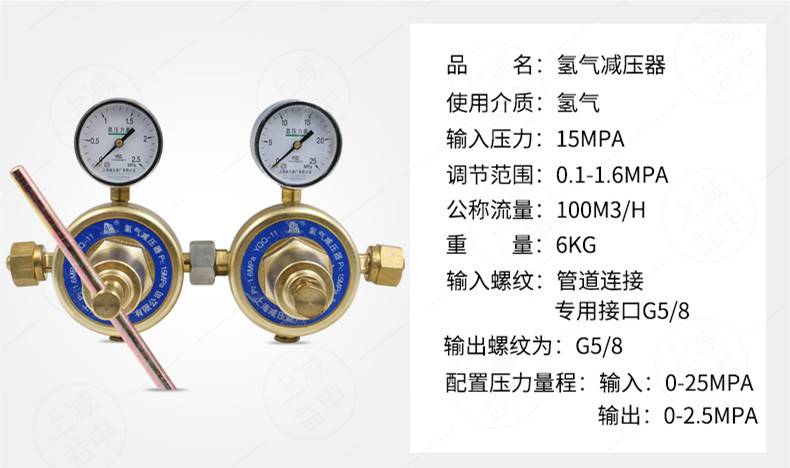 上海减压器厂YQQ-11氢气减压阀产品参数: