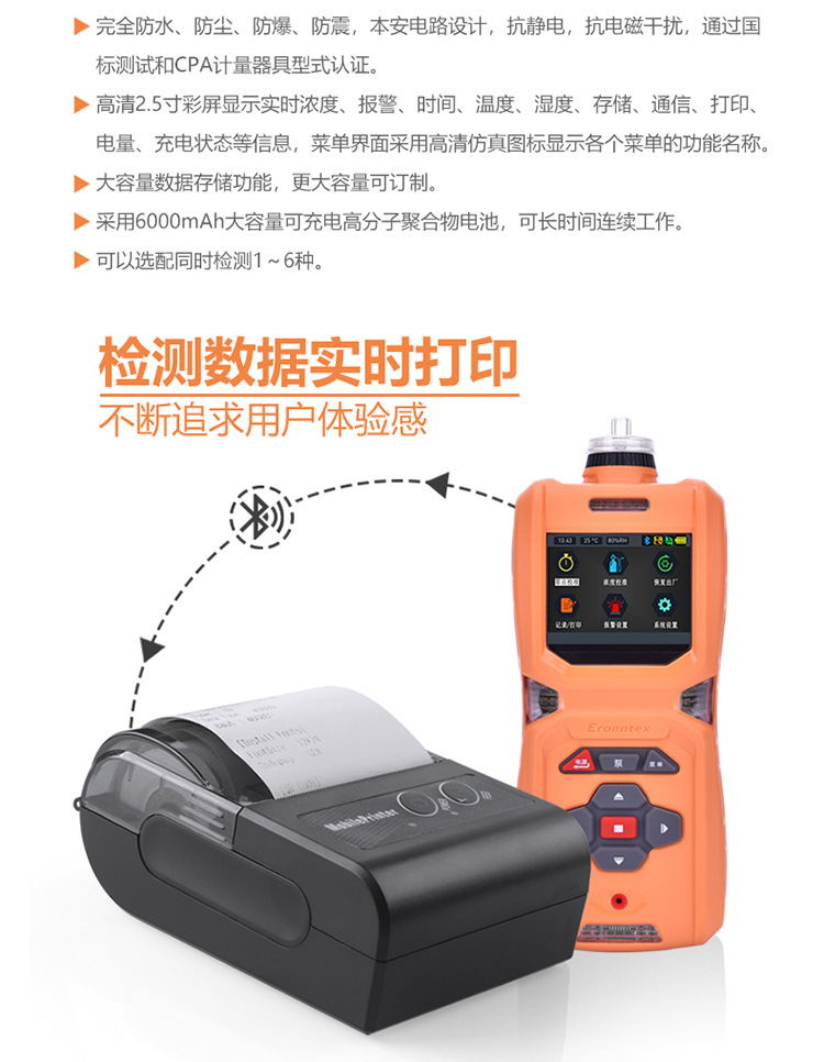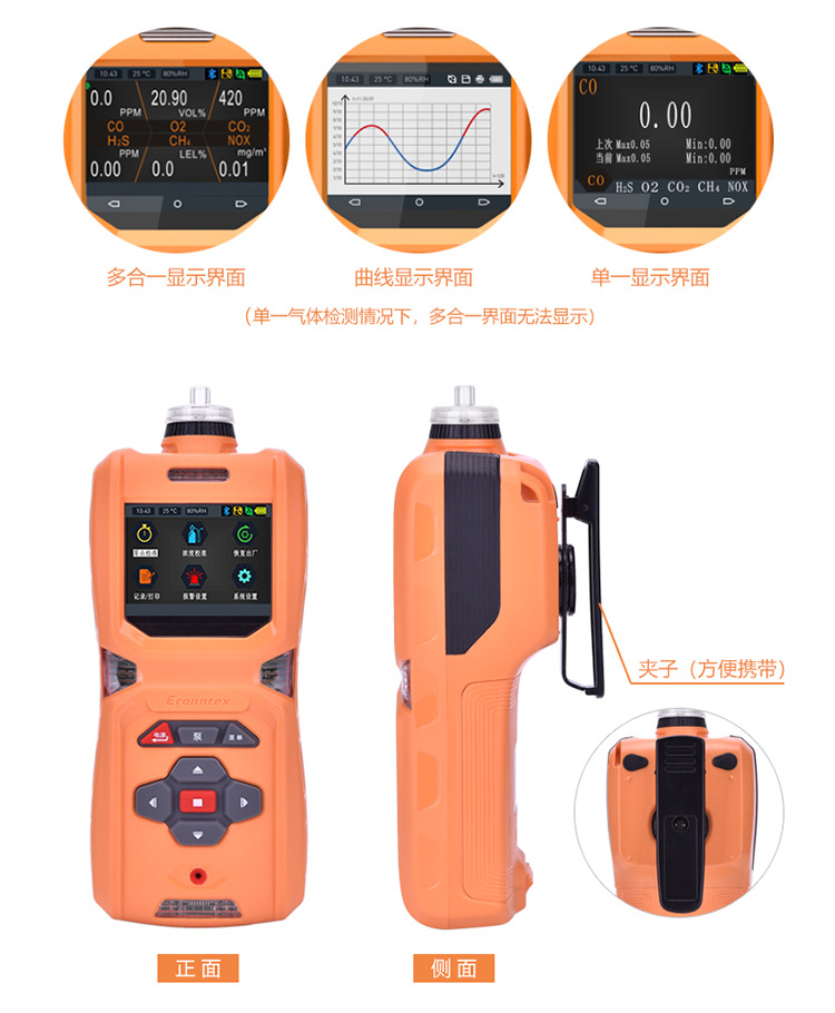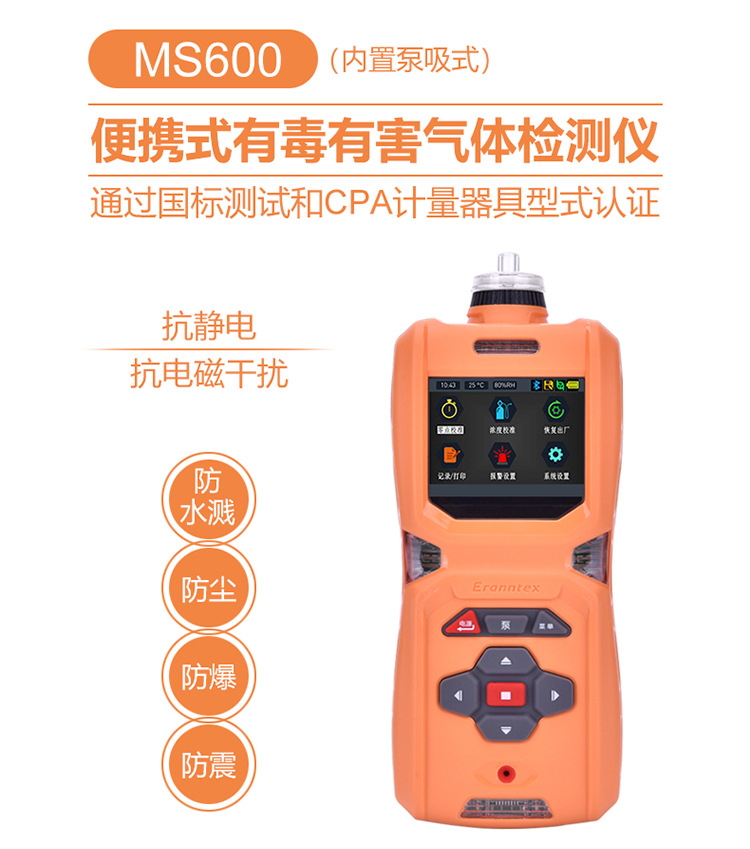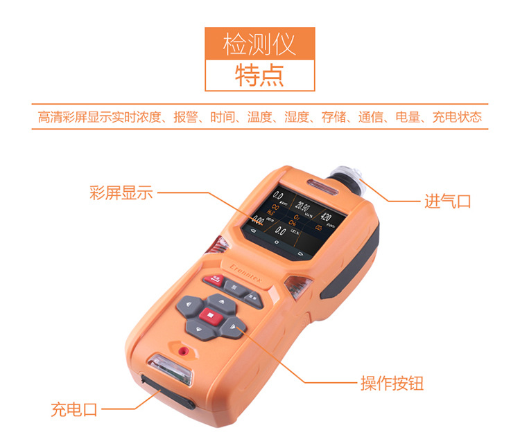 | 检测方式: | 内置泵吸式,流量500毫升/分钟 |