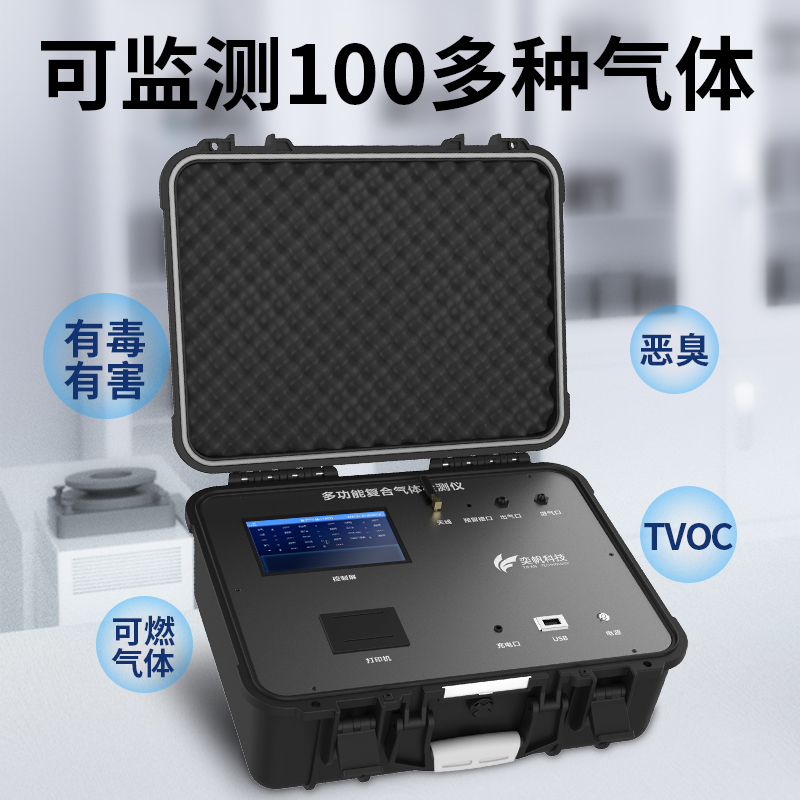 YF-900便携式多功能气体分析仪,可以进行,,,,,,,三,,,二氧化碳,,TVOC,粉尘,颗粒物等20多种有毒有害气体一起检测。气体种类搭配可以100种气体,可以进行销售咨询,准对客户要求进行定制。分析仪原理是当被测物质或者气体吸进入探头后,内部的传感器会时间发出感应。传感器根据气体浓度的高低会产生一定电量信号。该信号经过电路放大处理后,由CPU经过AD采样、温度补偿、智能计算后,输出的蓝牙信号、WIFI通讯信号,无线信号等。客户可通过采集这些信号,与手机,打印,云平台进行连接,数据存储。