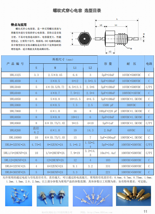 这种滤波器根据安装方式不同分为两种:焊接式和螺纹安装式,电路结构有 C 型、L 型、 LC 型、Pi 型、 T 型可以选用。