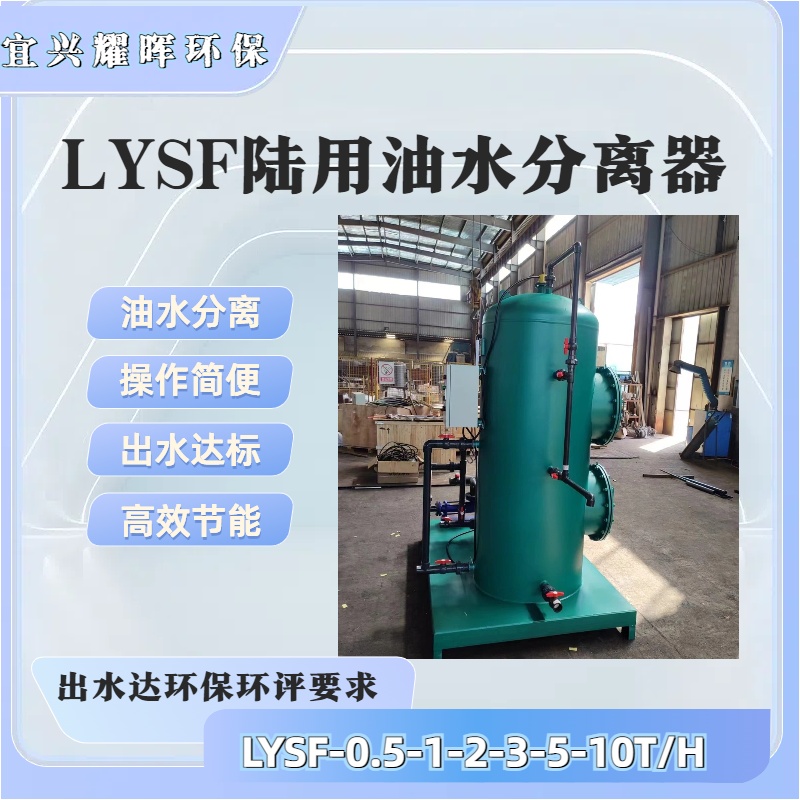 LYSF陆用油水分离器具有结构紧凑,操作简单,管理方便,分离效率高,能耗低等优点 ,处理后的水可直接排放或适当回用,提取的废油可直接回用。该装置将强化重力分离,粗粒化,吸附聚结处理工艺有机地组合成一钢质圆筒形整体结构,与泵、贮油槽及电控盒组合成处理装置。处理工艺充分利用重力分离特性,不同分离材质的特性因素,从而对各种处理难度较高的含油废水工况具有适应能力,适用于不含表面活性剂的各类油品的含油废水处理。该装置将强化重力分离,粗粒化,吸附聚结处理工艺有机地组合成一钢质圆筒形整体结构,与泵、贮油槽及电控盒组合成处理装置。处理工艺充分利用重力分离特性,不同分离材质的特性因素,从而对各种处理难度较高的含油废水工况具有适应能力,适用于不含表面活性剂的各类油品的含油废水处理。