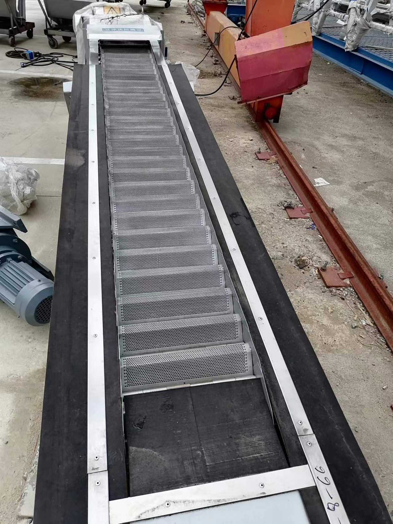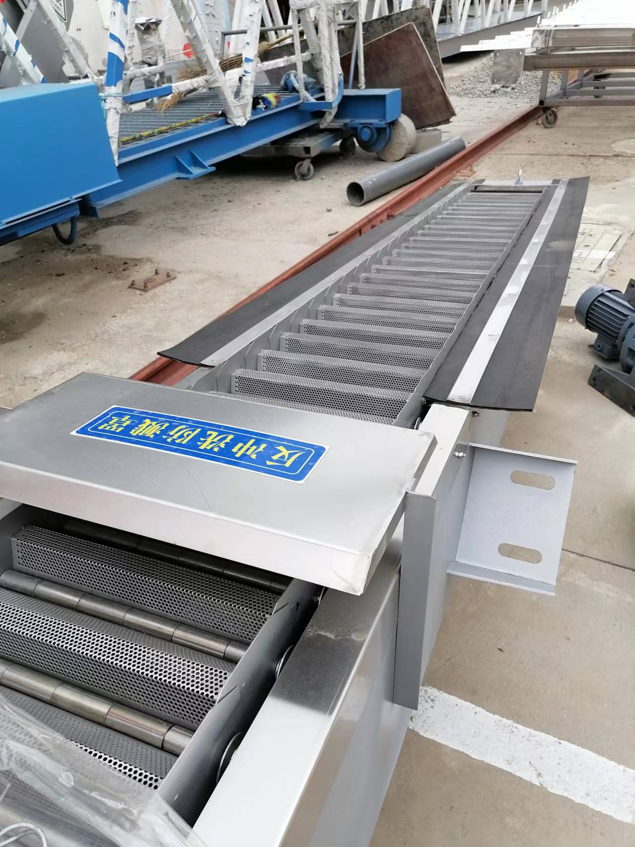 在电机减速器的驱动下,耙齿链进行逆水流方向运动。