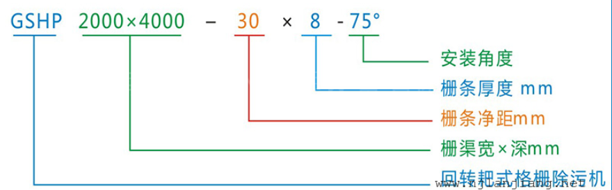 设备规格按机宽尺寸分HG300-1500型。机宽超过1500mm,则做成并联机。栅隙分为1mm、3mm、5mm、10mm、20mm、30mm、40mm、50mm等各种规格,由过水量、提升高度、固液分离总量和所分离物质的形状、颗粒大小来选择栅隙。可根据用户需要选用材质为ABS工程塑料、尼龙、不锈钢的耙齿制作;主体框架有不锈钢材质和碳钢防腐两种。
