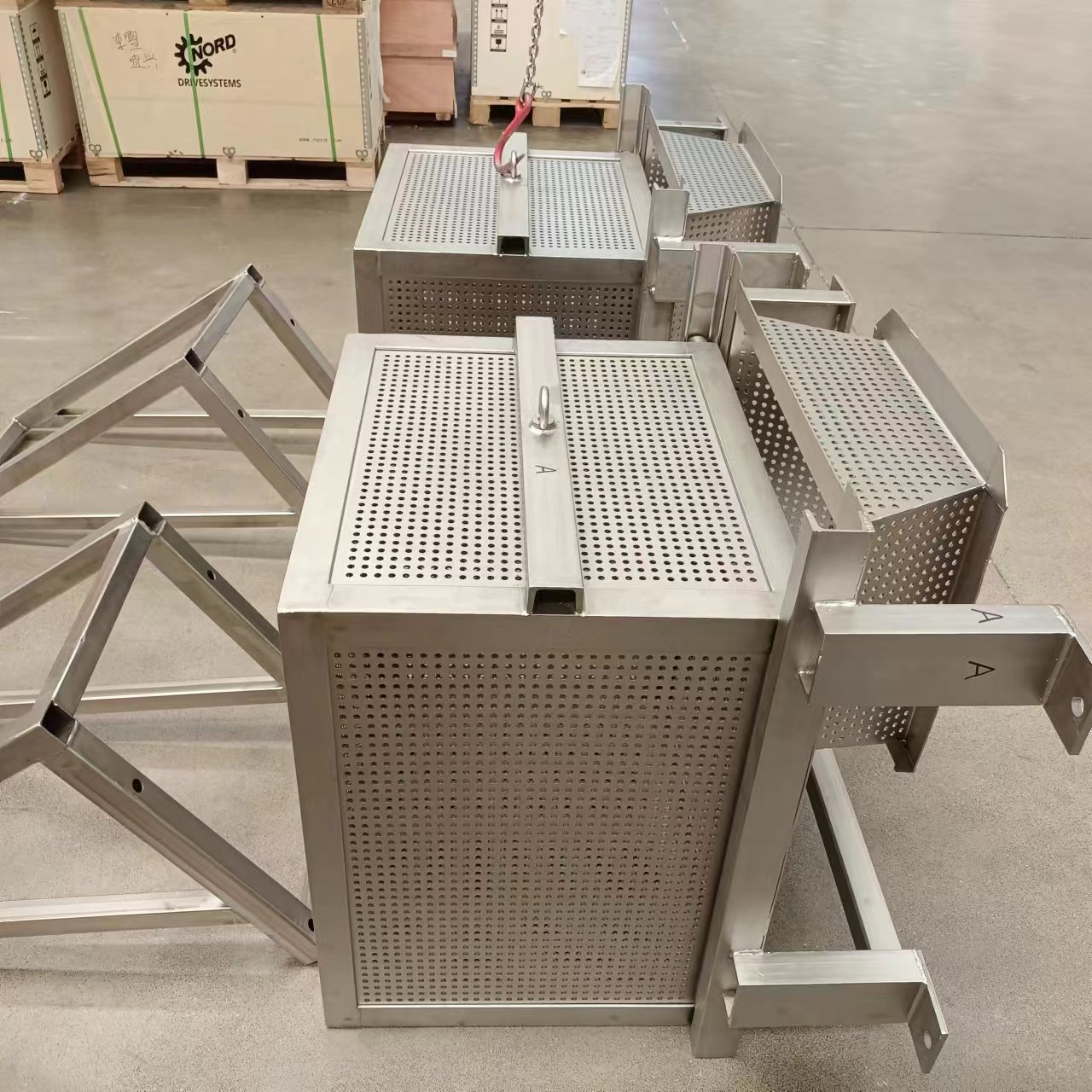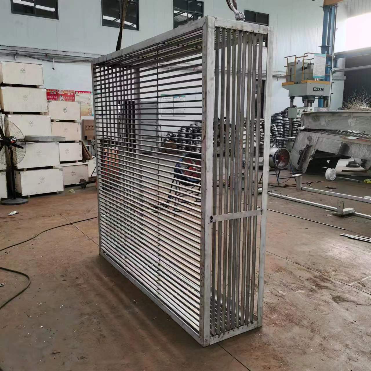 不锈钢提篮格栅 平板格栅可以水平安装在合流或分流制污水系统的溢流处,表面平整,可走人。水流的方向是从下往上,能够保证所有细杆同时受力、且分布均匀,因而流量也是均匀分布的,细杆之间的流速<1.4m/s。该设备采用不锈钢制造,一般由水力驱动,而且不需防爆,也可采用水轮驱动。控制柜可以安装在地面之上的任何位置,控制柜中配有液压控制单元,利用液位仪启动清渣过程。根据污染的情况,每隔一定时间格栅可自双向前后分段仔细去除截留物。降雨停止后,截留物会自动掉入污水管道,然后送往污水处理厂进行处理,因而没有运行开支。
