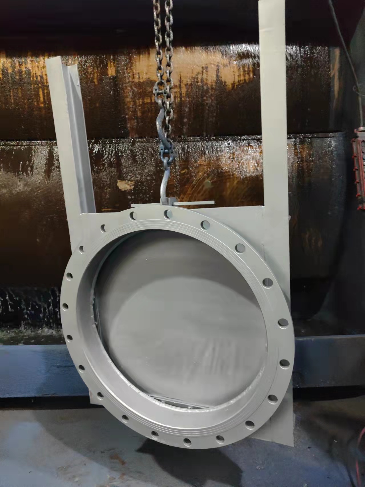 在开启和关闭过水孔口时应注意闸板的上、下极限位置,以免损坏或启闭机。在启闭过程中,如有异常情况,应立即停止使用,并及时检查处理,排除故障后,才能继续使用。