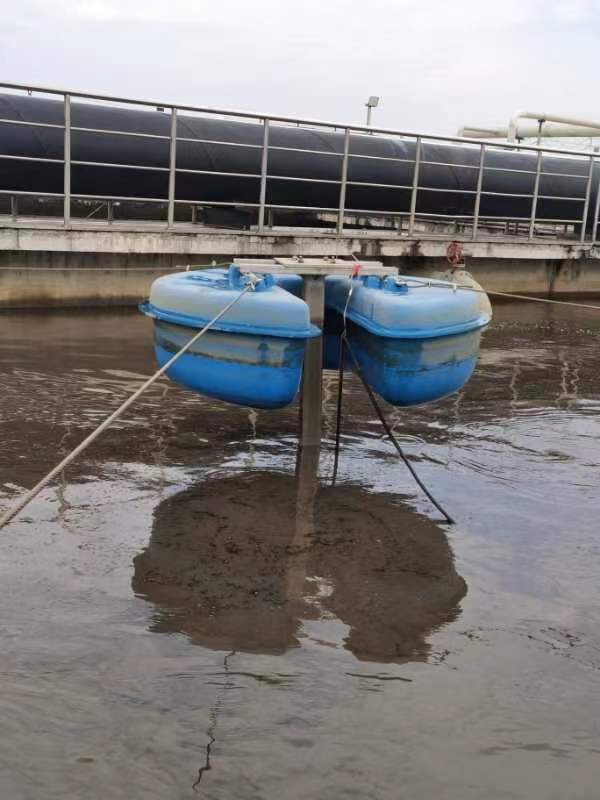 本厂自行开发的潜水型浮筒搅拌机,结构紧凑体积小。中高速搅拌机由浮筒、潜水电机、叶轮、钢丝绳和导杆组成;低速浮筒搅拌机由叶桨、减速机、潜水电机、钢丝绳、主轴和浮筒组成。