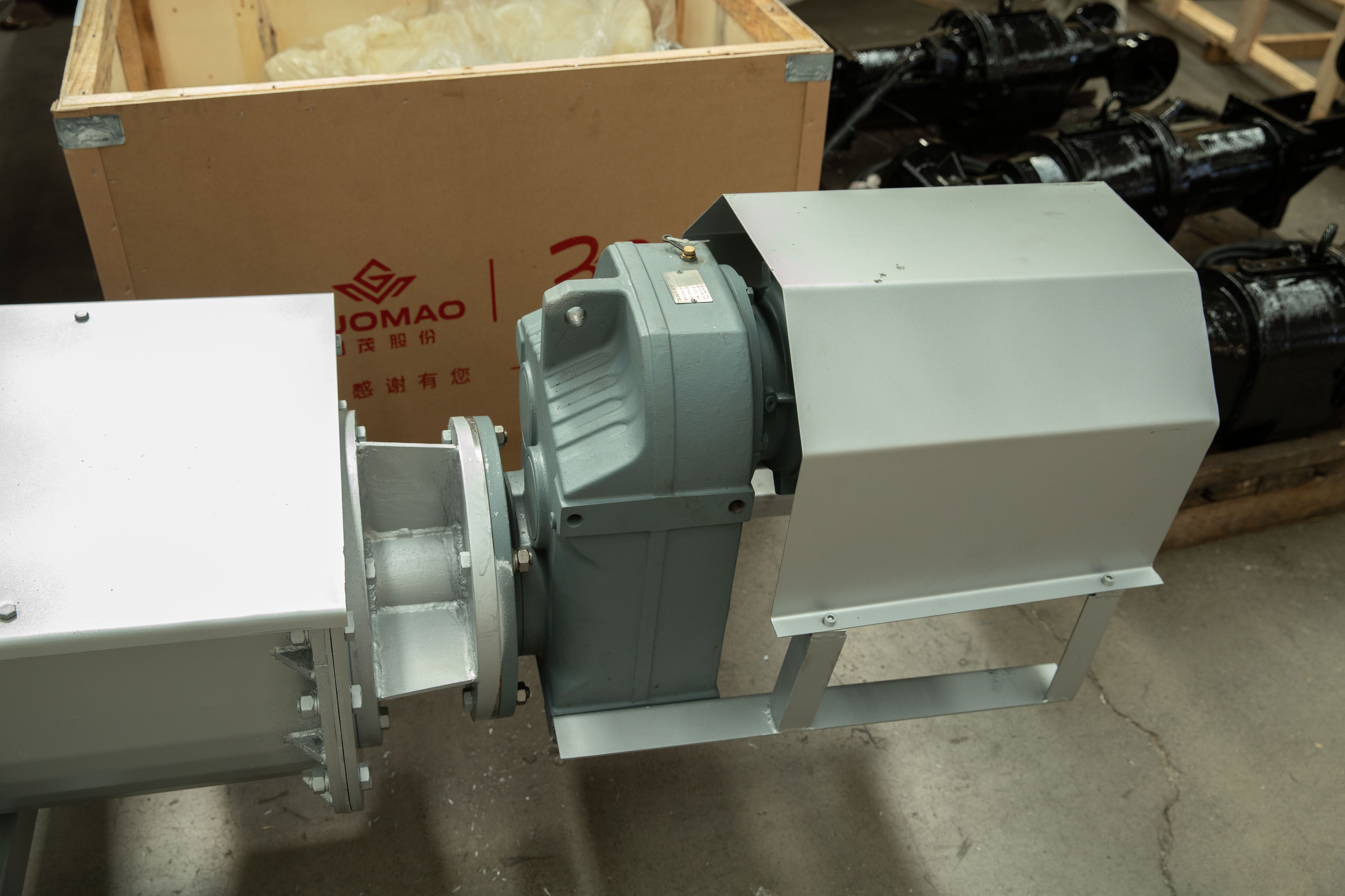 1、驱动装置:采用摆线针轮轮减速机或轴装式硬齿面齿轮减速机,设计时应尽可能将驱动装置设在出料口端,使螺旋体在运转时处在受拉状态。