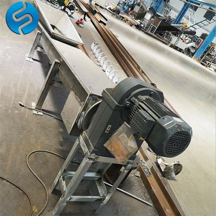 由无轴螺旋、U型槽、衬板、盖板、进出口和驱动装置组成。物料由进料口输入,经螺旋推动后由出料口输出。
