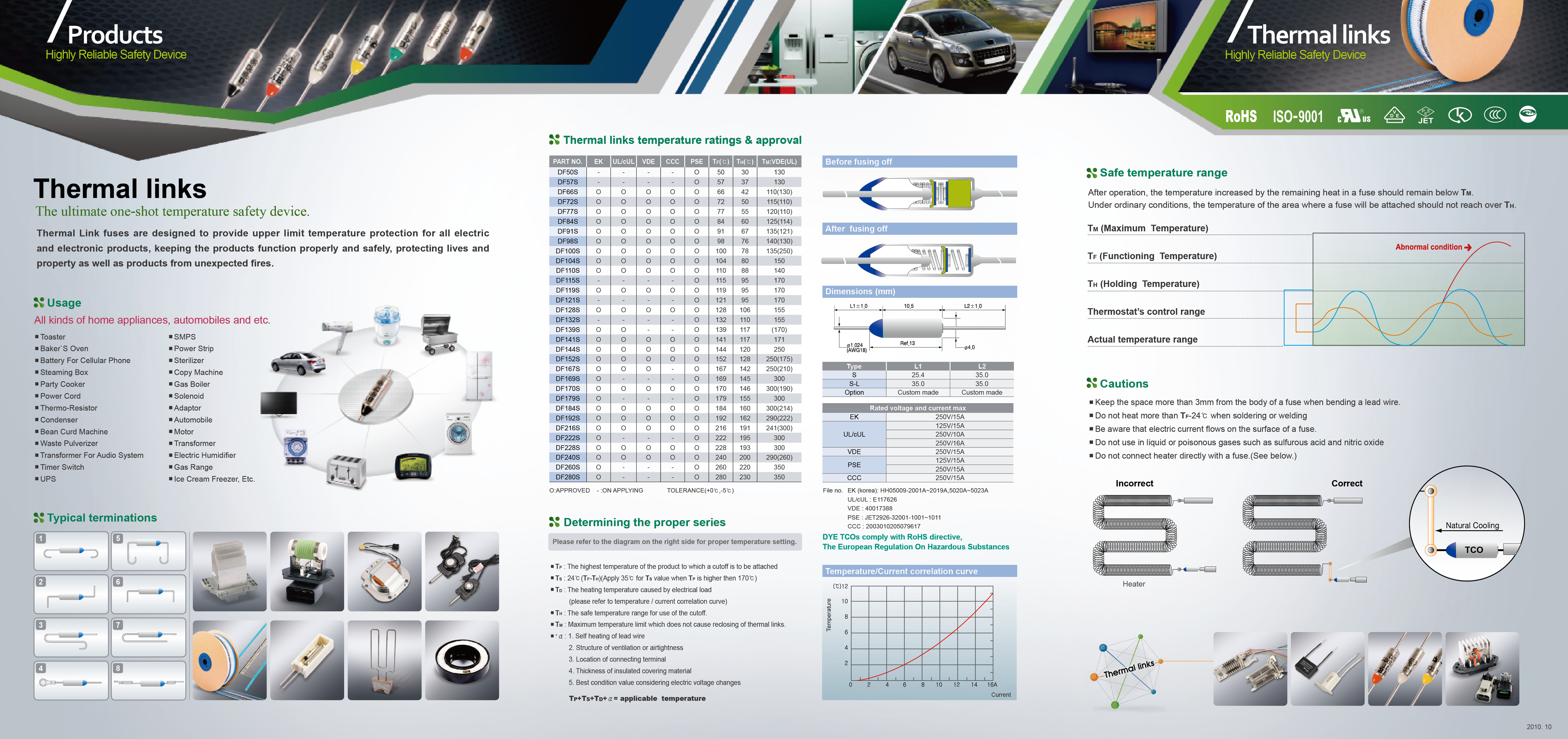 PAPT NO.Tf(℃)Th(℃)Tm:VDE(UL)EKUL/CULVDECCCPSE