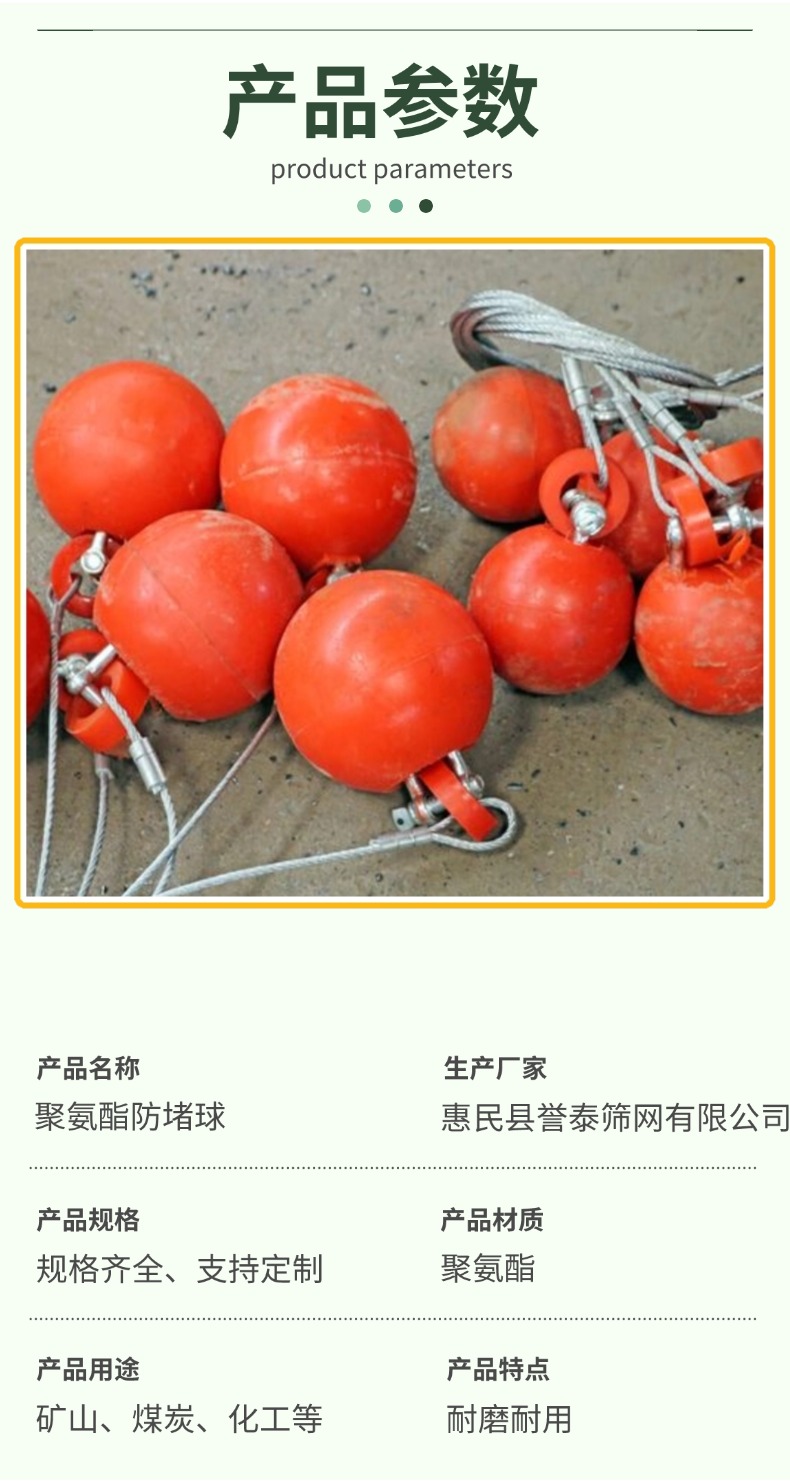 在矿山作业里,物料堵塞常影响生产效率。这款矿用聚氨酯防堵球,是解决这一难题的好帮手。它用聚氨酯制成,耐磨、耐冲击,能在恶劣矿山环境里稳定工作。把它安装在振动筛、溜槽等设备,能持续碰撞物料,防止物料黏连、堵塞。而且,它安装简便,适配各类矿山设备,帮助矿山企业减少因堵塞导致的停机时间,降低维护成本,助力矿山生产平稳运行 。