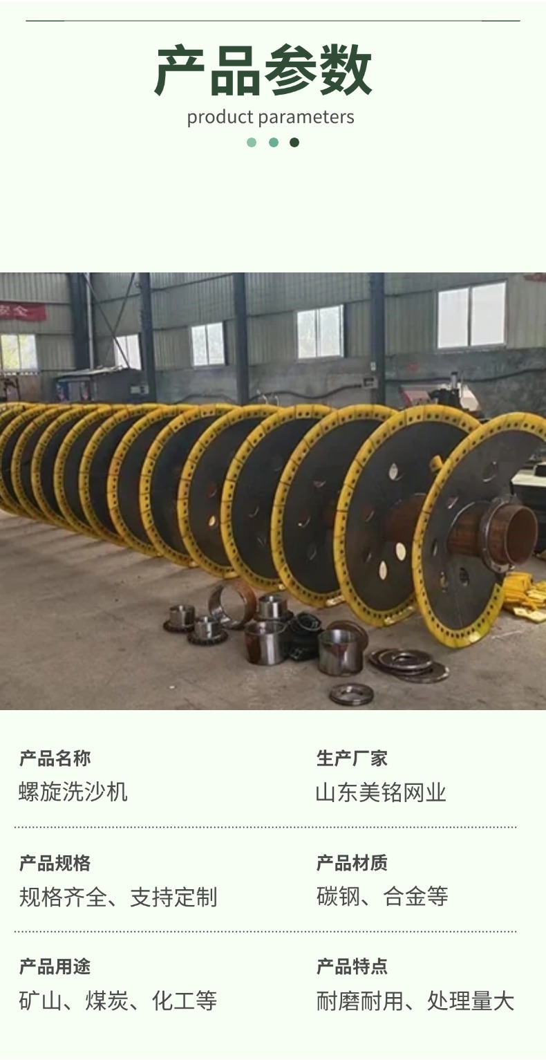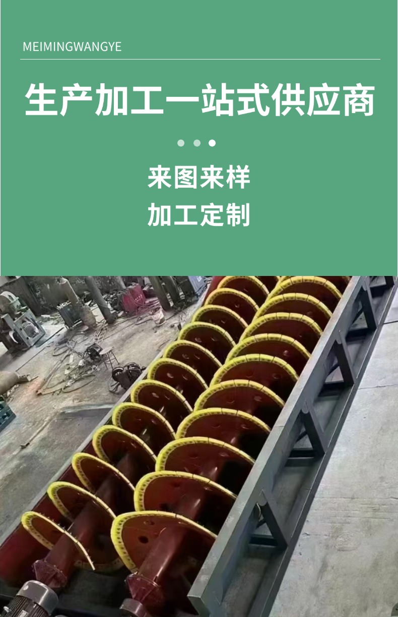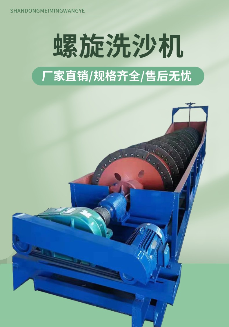 螺旋洗沙机是砂石清洗领域的关键设备。它主要由螺旋叶片、水槽、减速机等部件构成。工作时,电机带动螺旋轴转动,砂石在水槽中被螺旋叶片推动,与水充分接触,从而洗去表面的泥土、石粉等杂质。其优势明显,结构简单稳定,易于维护;能适应不同粒度的砂石清洗,适用范围广;且可连续作业,处理量大,在矿山、建筑工地、砂石厂等场景中,高效提升砂石洁净度 。