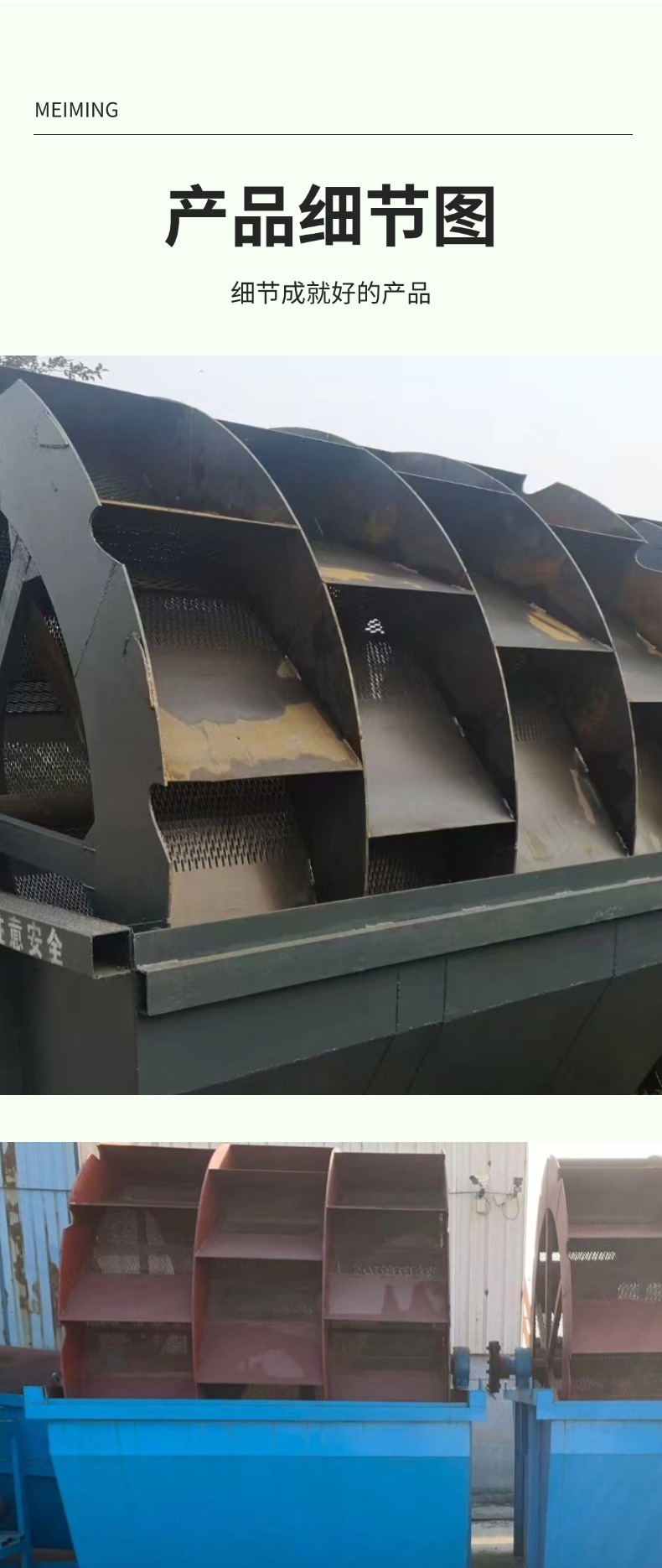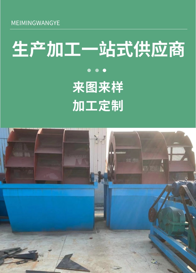 轮式洗沙机是砂石处理的常用设备。其核心部件是轮斗,通过旋转将砂石在水中翻滚冲洗,去除泥土、石粉等杂质。该设备结构紧凑,运行稳定,能适应多种复杂工况。工作时,功率消耗小,却有着不错的处理量。清洗后的砂石洗净度较高,能满足建筑、混凝土搅拌站等行业对砂石清洁度的要求,有效提升砂石品质,在各类砂石生产场景中发挥关键作用。