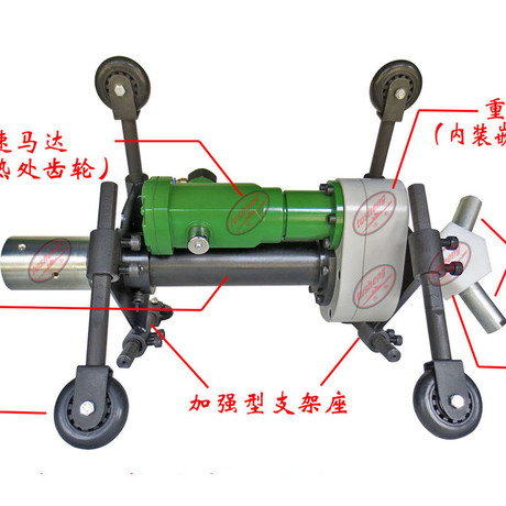 GL400型内型喷砂器利用空气马达带动经齿轮传动,带动喷嘴360度旋转来实现对管道内壁的处理,喷嘴旋转速度0-120转/min可调。该机器有两只喷嘴同时喷砂工作,效率高,速度快。适用于内径250mm-450mm管道内壁喷砂处理。该机可处理 大内径为500mm。