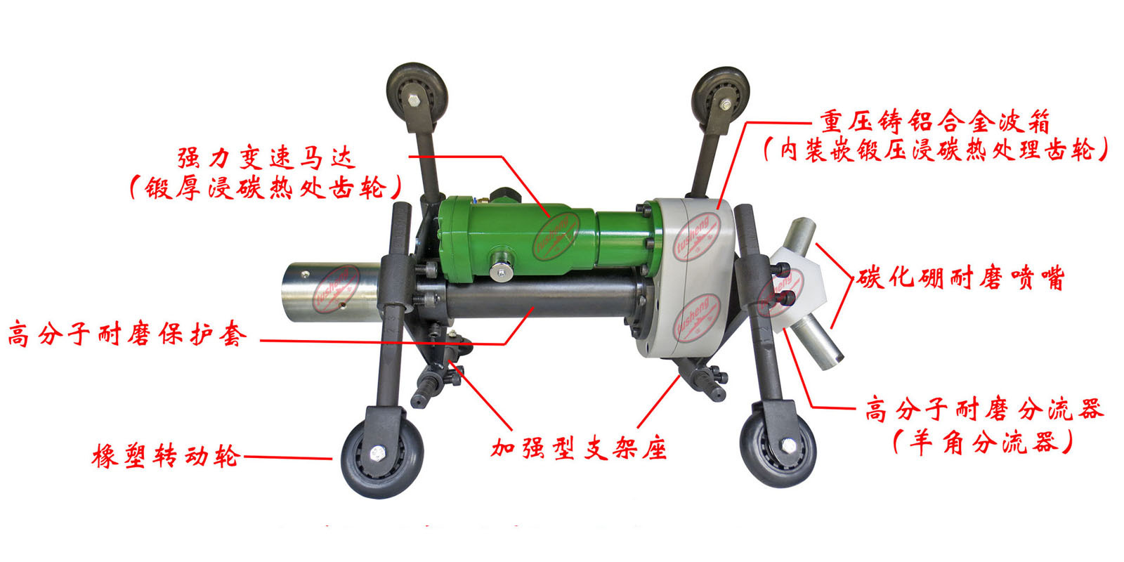 管道内壁喷砂机又被称为管道内壁喷砂枪,管道内壁喷砂嘴,管道内壁喷砂器等等。