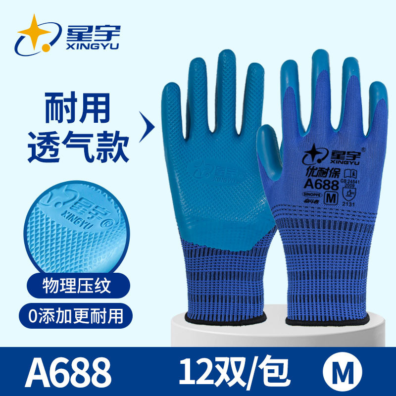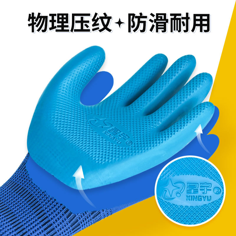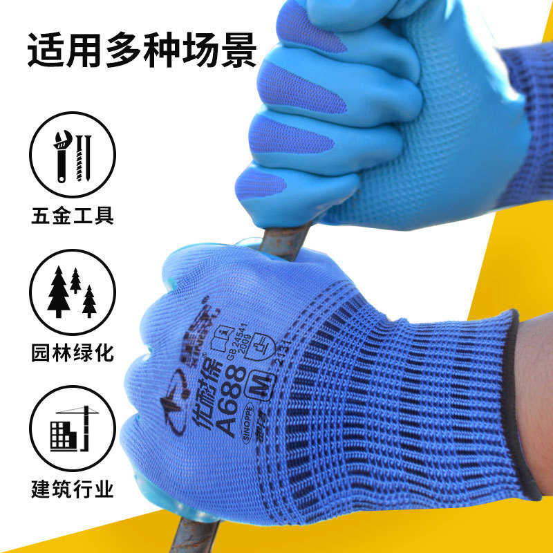 八大技术:运用胶料预处理、调配、恒温技术确保胶料质量性能稳定;手模高温加热和热敏胶凝技术,提高胶面与纱线结合强度;物理防滑技术使掌纹纹理清晰均匀,防滑性能出色;人体工学定型技术让手套外形贴近手部自然弧度,佩戴无压力;循环水洗工艺保障手套洁净安全。