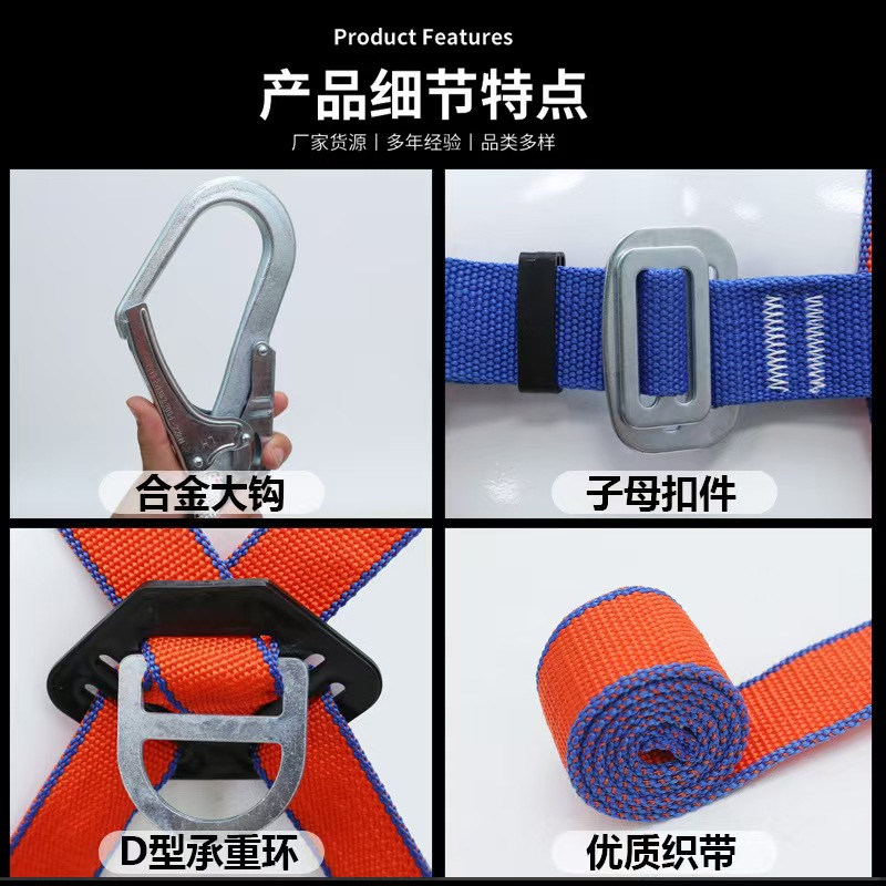 符合新国标:严格遵循新国标生产制造,各项安全指标均达到或超过国家标准要求。无论是安全带的强度、抗磨损性能,还是连接部件的可靠性等方面,都经过了严格的质量检测。例如,安全带的织带采用高强度聚酯纤维材质,其拉伸强度远高于普通织带,确保在关键时刻不会断裂,为使用者提供坚实的安全保障。