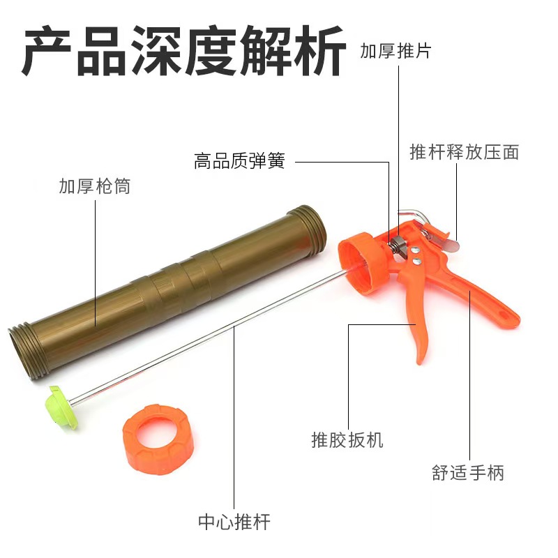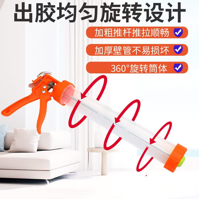 圆筒式结构设计科学合理,能够完美适配市面上多种规格的胶筒,无论是常见的310ml、400ml筒装胶,还是腊肠装软胶,都能轻松兼容。这种设计使得胶液在筒内受力更均匀,出胶流畅稳定,有效避免了因胶筒适配不当导致的出胶不畅、卡顿等问题,极大地提升了施胶效率。