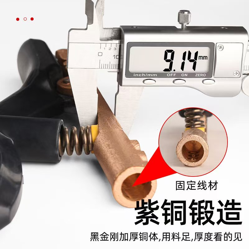 高导电性:钳体采用纯度极高的纯铜材质,铜的优良导电性能可使电流传输顺畅,大大降低电阻。电阻降低意味着电能损耗减少,焊接过程中不会因电流损耗导致焊接质量下降,能稳定输出强大电流,保证焊接电弧稳定,使焊缝成型美观、牢固。