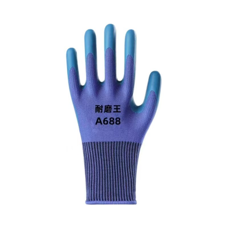 手套采用乳胶材质,具备天然的耐磨特性,能够有效抵御建筑工地上常见的摩擦、刮蹭等损害,延长手套的使用寿命。通过挂胶工艺,在手套表面形成一层均匀的胶层,进一步增强手套的耐磨性和防护性,同时提升手套的整体强度,使其在高强度的工作中不易破损。