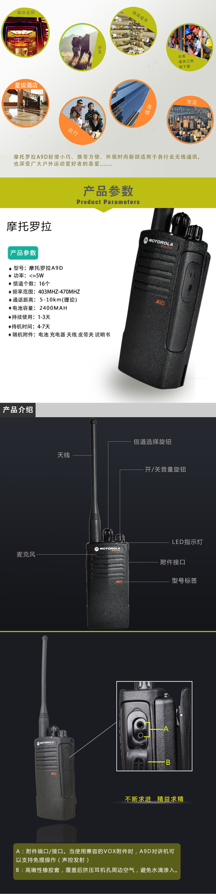 摩托罗拉数字对讲机 A9D抗噪抗摔防尘DPMR商用数字机