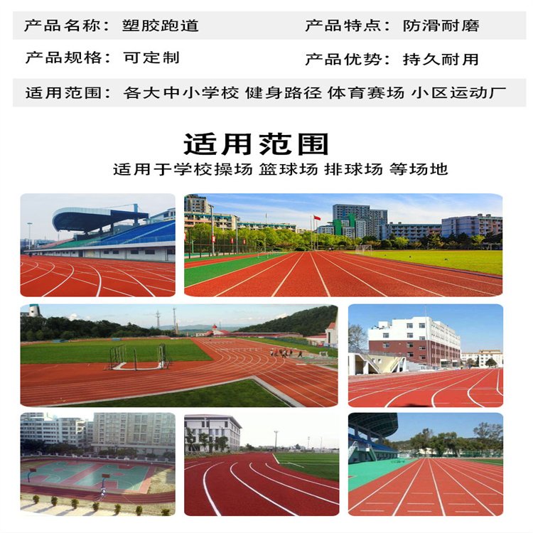 供应学校操场混合型塑胶跑道 13mm防滑耐磨塑胶场地材料 明晟体育