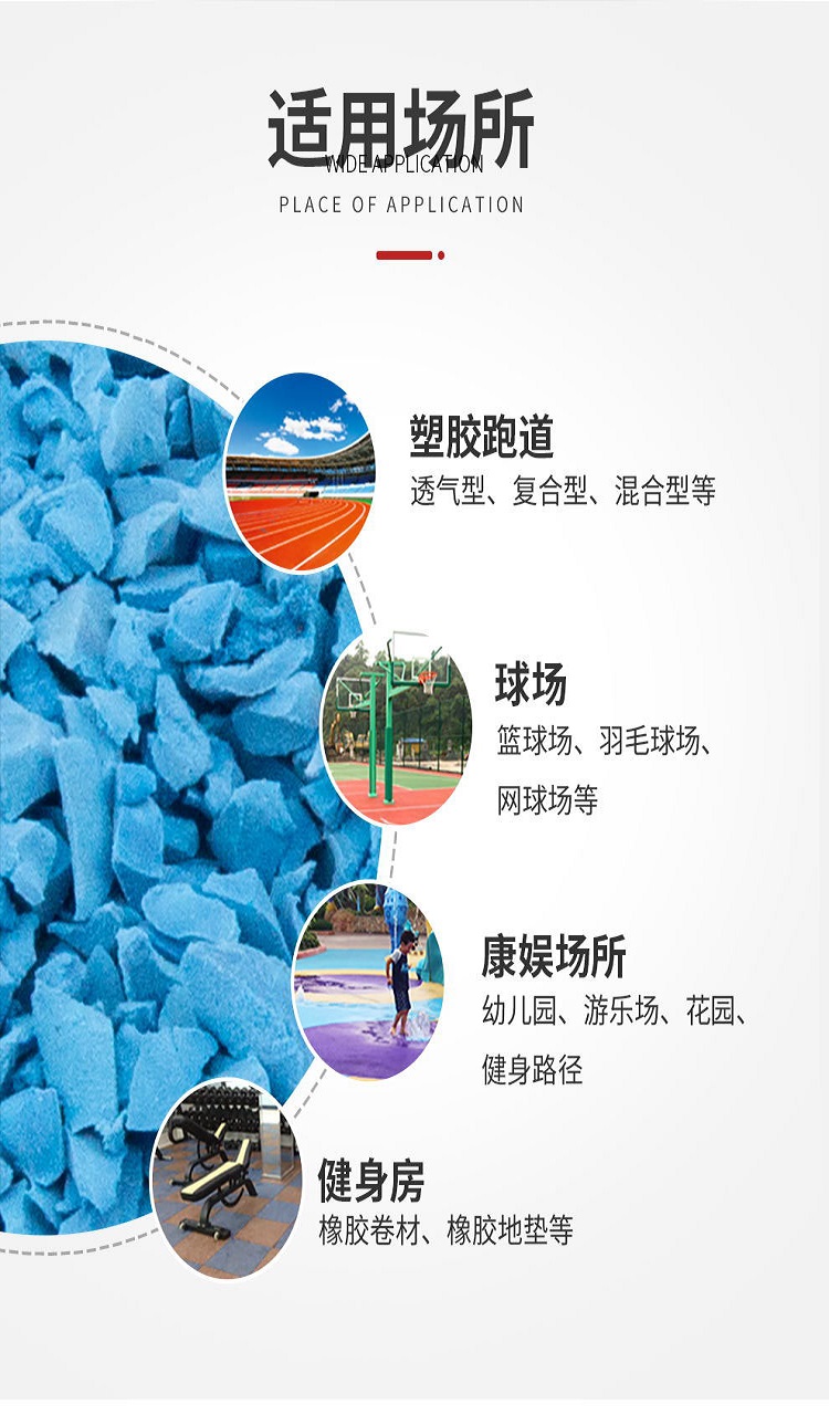 明晟EPDM橡胶颗粒 弹性塑胶跑道 抗老化彩色运功场地 美观耐用
