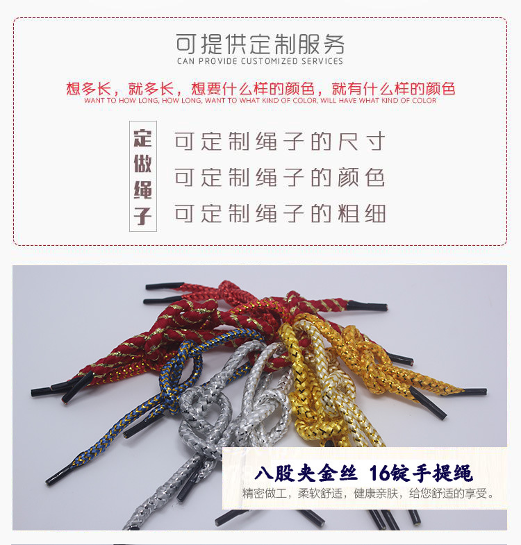 用途 :〓包装绳〓手提绳〓束口绳〓箱包绳〓服装辅料〓家居日用〓鞋带〓其他相关用绳〓