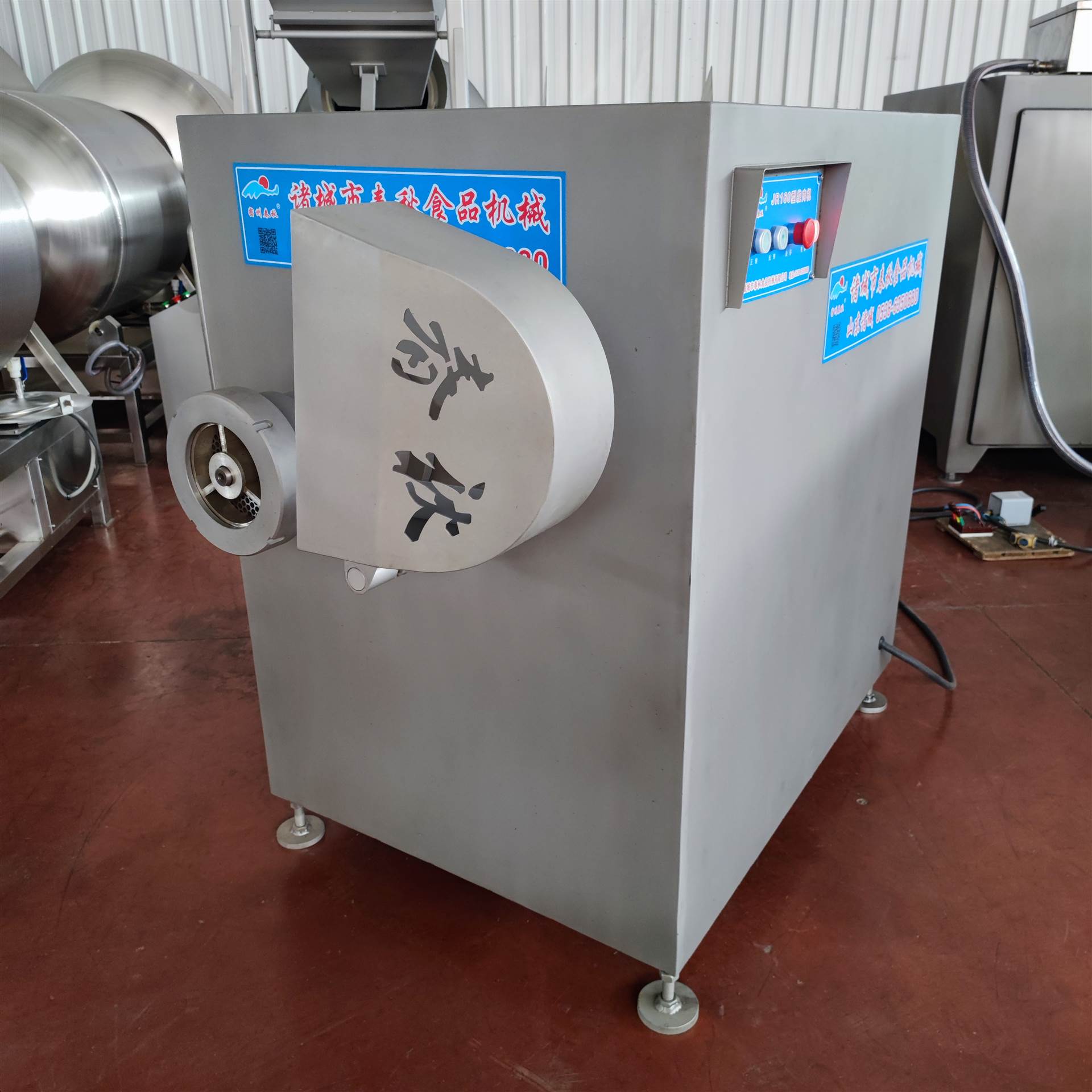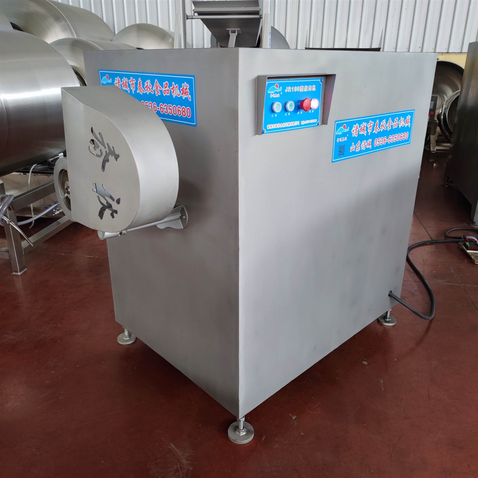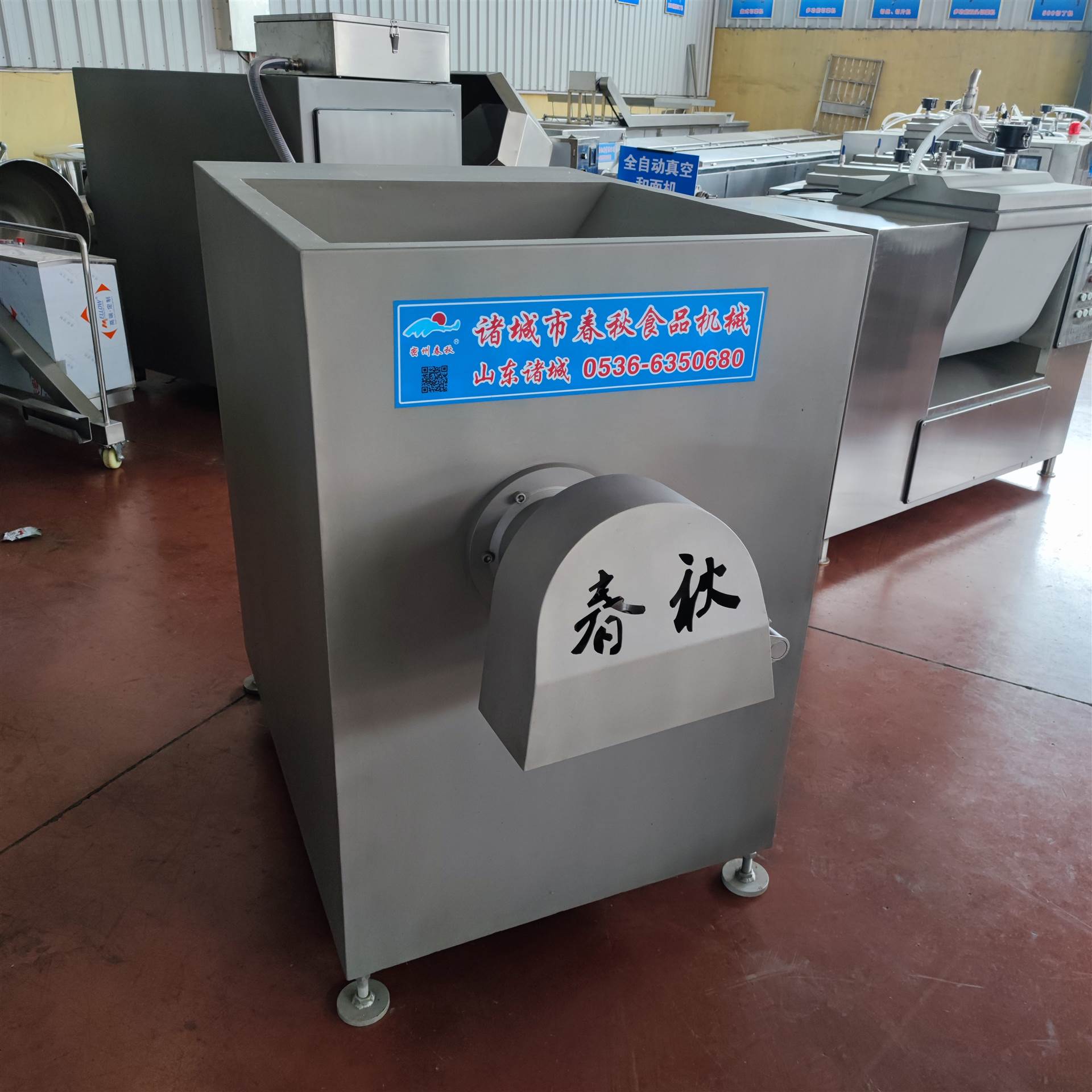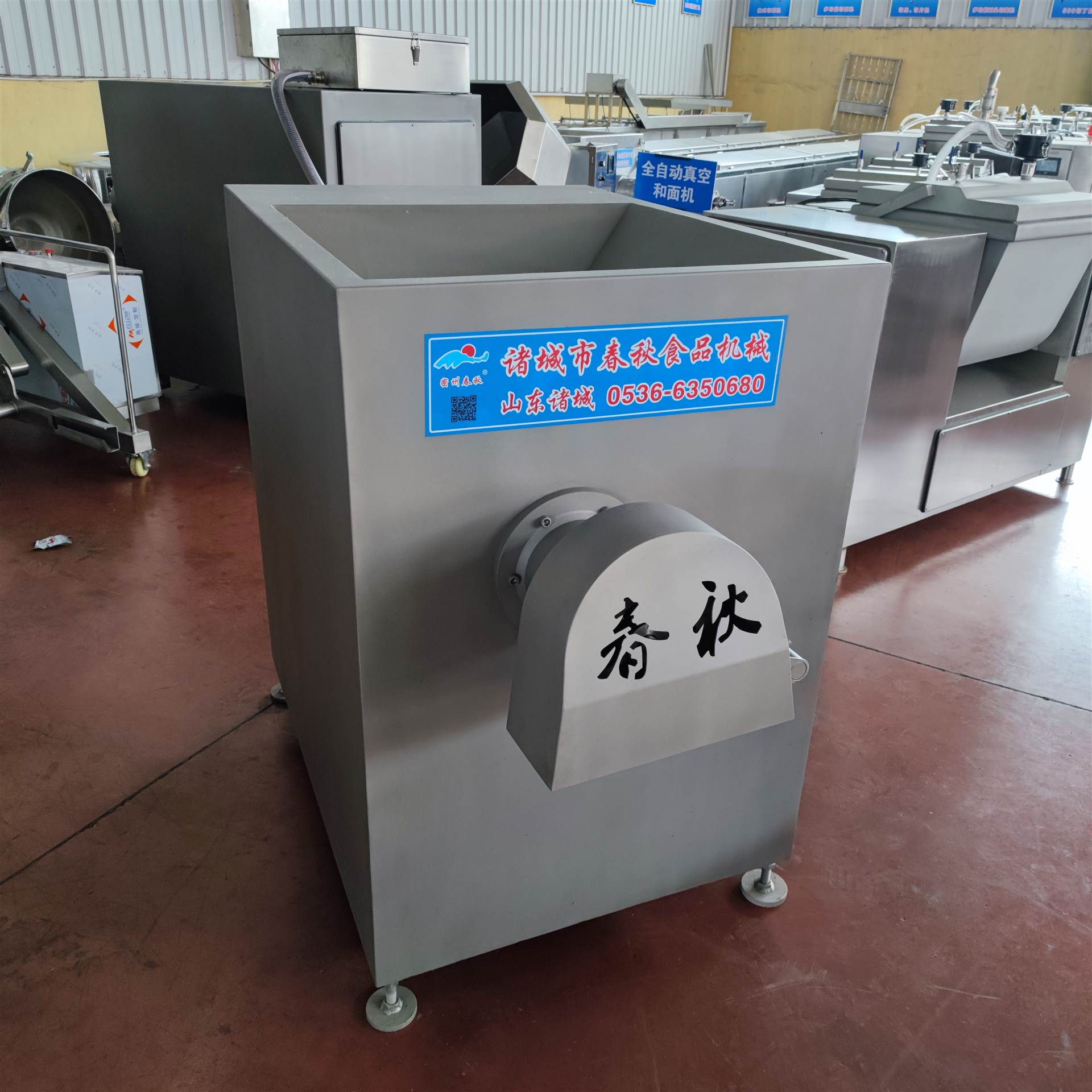 春秋食品机械冻肉鲜肉绞肉机可根据客户要求定制冻肉绞肉蛟龙或者鲜肉绞肉蛟龙,18年大厂品质,久经市场考验,正泰电器,食品级304不锈钢,可定制不同尺寸刀具和孔板。小时产能1-2吨。