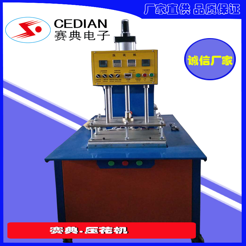设有三段压力,任何材质可选择不同的压力。鞋面高频热合压字机是塑料热合的设备,其加热原理与热传导型塑料熔接机不同,它是利用高频电场使塑料极性分子扭转来产生摩擦热,进而达到熔接的目的,其熔接的温度是表里均匀。任何PVC含量大于10%的塑料片材,无论其软硬如何,均可用高周波塑胶熔接机热合封口。皮革行业亦可使用本机对皮具压花、整形。采用国际工业频段27.12MHz。鞋面高频热合压字机内置火花保护器,鞋面高频热合压字机工作行程随意调整,操作安全简便。