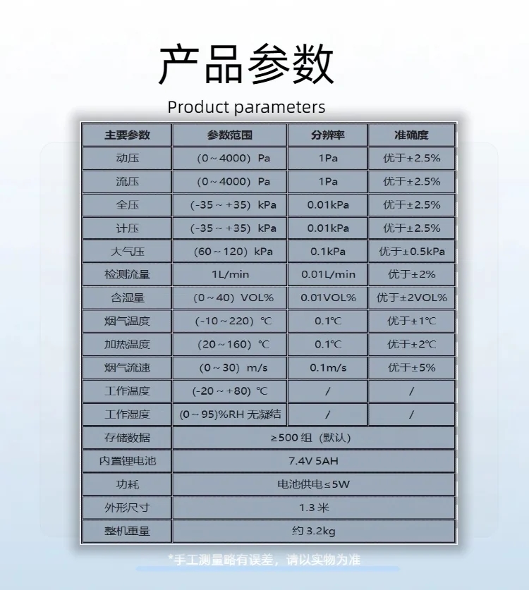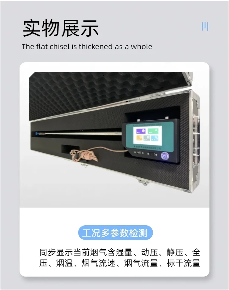 12.一体式设计,可测含湿量、烟气流速、烟温等数据。