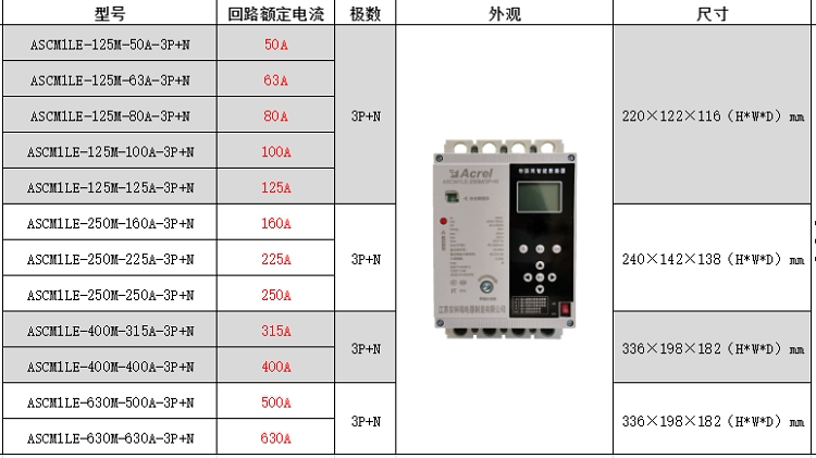 1. 概述ASCM1系列智能塑壳断路器(以下简称智能塑壳断路器),其额定绝缘电压为1000V,适用于交流50Hz,额定电压为400V,额定电流至630A的三相四线中性点直接接地(TT)配电网络。智能塑壳断路器具有间接接触保护功能,防止因设备绝缘损坏,产生接地故障电流而引起的火灾危险;并可用来分配电能,保护线路,电源设备免受过载、过欠压、短路、过温、缺相、单相接地等故障的危害。产品符合以下标准:GB/T 14048.1-2012《低压电气设备和控制设备第 1 部分:总则》;GB/T 14048.2-2008《低压电气设备和控制设备第 2 部分:断路器》;GB/T 17701-2008《设备断路器》;GB/Z 22202-2008《家用和类似用途的剩余电流动作断路器可靠性试验方法》;JB/T《家用和类似用途的剩余电流动作断路器可靠性试验方法》;JB/T《带或不带过载保护的剩余电流动作断路器》等。 3. 功能特点? 采用高性能32位ARM微处理器,实时进行信号处理和智能控制。? 液晶显示,人机界面友好,操作简便。? 剩余电流(漏电)保护,剩余电流档位可在线整定。? 长延时、短延时和瞬时三段保护,采用电子式脱扣。? 具有高分断能力,保证线路短路保护的可靠性。? 过压保护,欠压保护,缺相保护。? 线路剩余电流、三相电源电压、负荷电流实时显示。? 保护功能及参数可在线设置修改。? 跳闸类型(剩余电流、过载、欠压、过压、缺相、过温)识别、显示,并可存储、查询、删除。? 具有通信功能,可实现遥信、遥测、、遥调。? 具有计量功能。