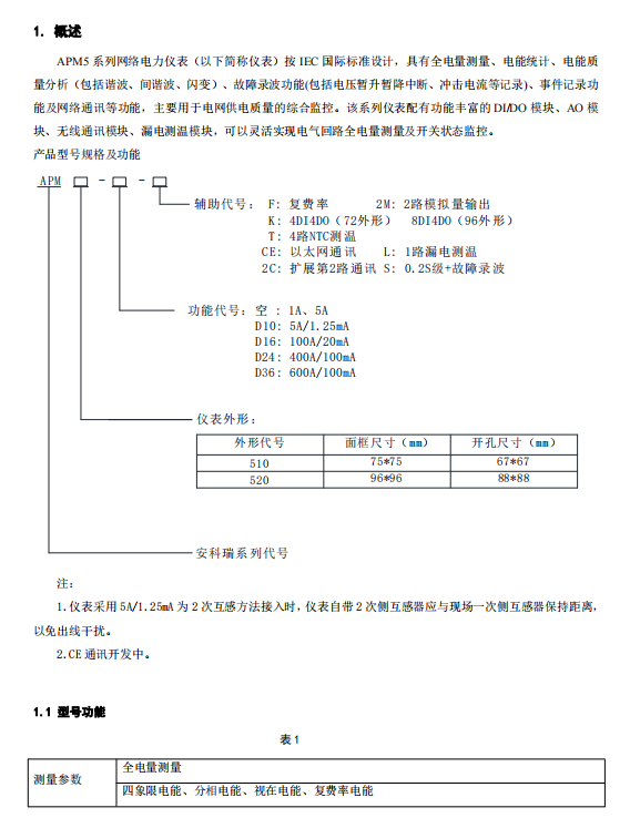 APM系列网络电力仪表按IEC标准设计,具有全电量测量,电能统计,电能质量分析及网络通讯等功能,主要用于对电网供电质量的综合监控诊断及电能管理。