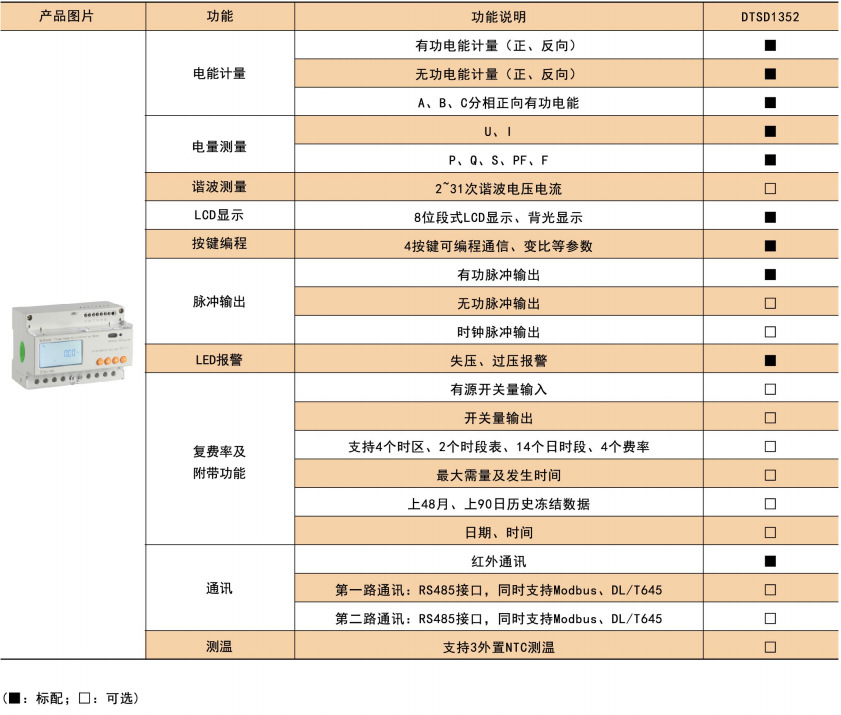 DTSD1352 导轨式多功能电能表,是主要针对电力系统,工矿企业,公用设施的电能统计、管理需求而设计的一款智能仪表,产品具有精度高、体积小、安装方便等优点。集成常见电力参数测量及电能计量及考核管理,提供上48 月的各类电能数据统计。具有2~31 次分次谐波与总谐波含量检测,带有开关量输入和开关量输出可实现“遥信”和“遥控”功能,并具备报警输出。带有RS485 通信接口,可选用MODBUS-RTU 或DL/T645 协议。该电力仪表可广泛应用于各种控制系统,SCADA 系统和能源管理系统中。产品符合企业标准Q31/0114000129C035-2017《导轨式安装电能表企业标准》的要求。