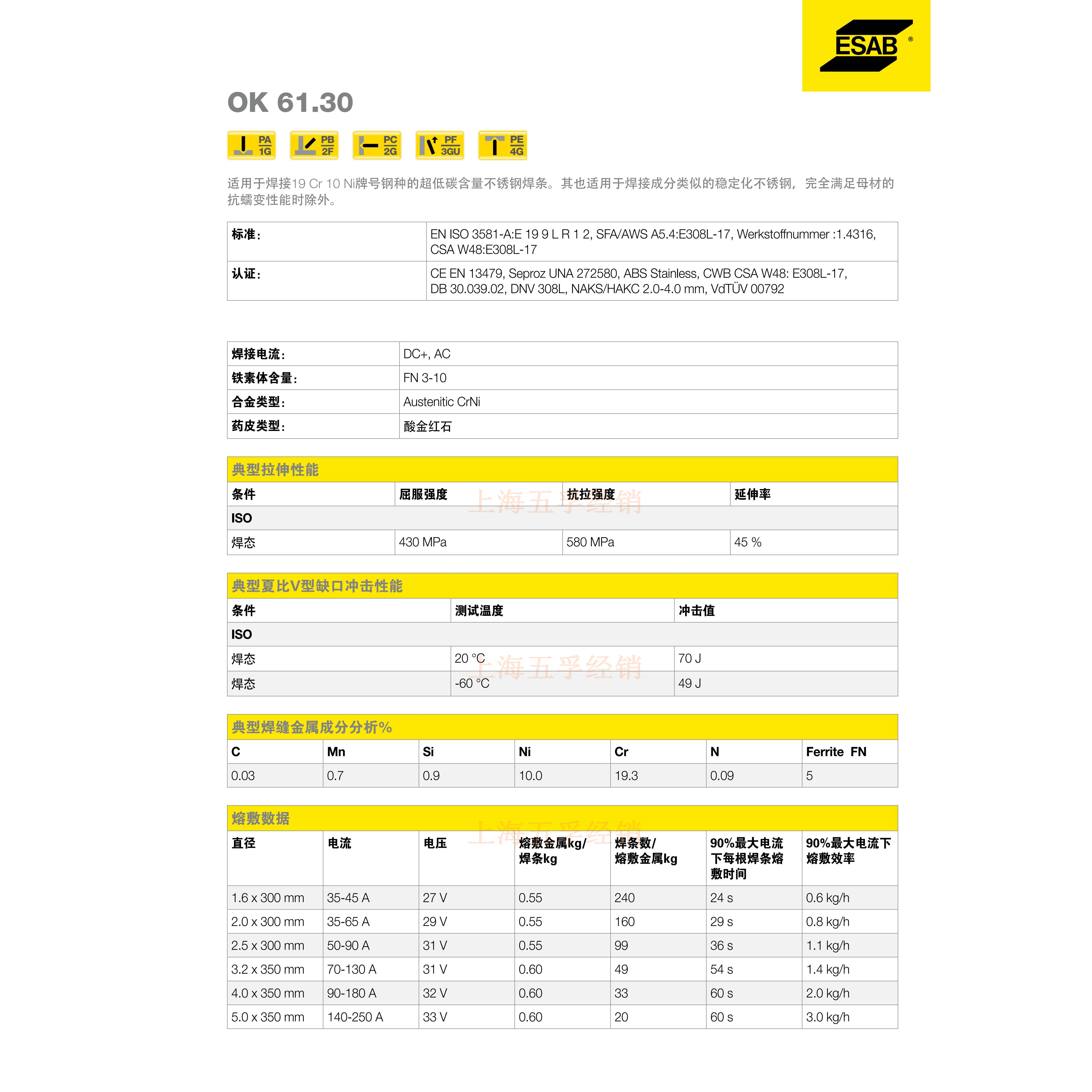 供应ESAB OK 61.30电焊条(E308L-17;E199LR12),欢迎咨询洽谈订购。