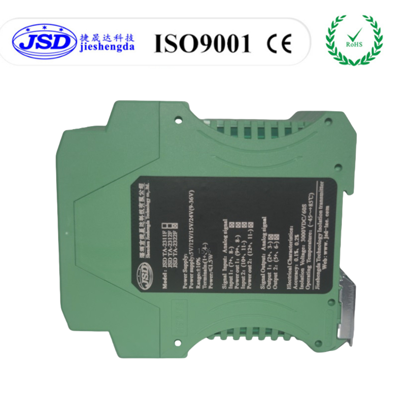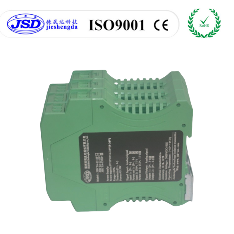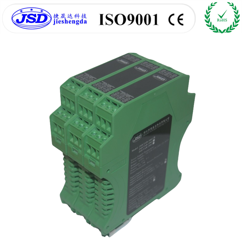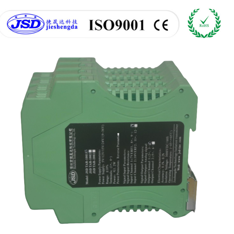 捷晟达科技(JSD科技)的JSD TA-2001C系列二进一出自动选择模拟量信号隔离变送器,是在普通模拟量隔离变送器升级而来,可以自动识别您输入模拟量的信号或者电位器信号,根据您的需求选择输入的信号通道进行信号采集,放大,隔离,转换及信号无失真远传,当给通道1和通道2同时接入输入信号时,产品会根据您的要求或者是产品设定好的数据状态自动切换到相应的通道,不需外加激励电压或开关信号,也不用人工操作拨码开关,省去操作拨码开关的繁琐,该产品并将这路模拟量信号进行隔离,变换,放大,远传并以标准模拟量信号的形式或者用户的特殊的模拟量信号远距离传输到控制室、PLC、PC及DCS系统。产品的输入、输出、工作电源间相互隔离,隔离电压高达3KVDC,在模拟量信号比较,控制,工业现场和电气自动化过程控制、电力监控、电子设备、模拟量隔离及采集等方面广泛应用。该隔离器采用光耦隔离技术,相比电磁隔离变送器具有更好的抗EMC电磁干扰能力,满足工业现场的隔离需求,安装方式采用国际标准DIN35mm设计,方便用户直接接线使用。