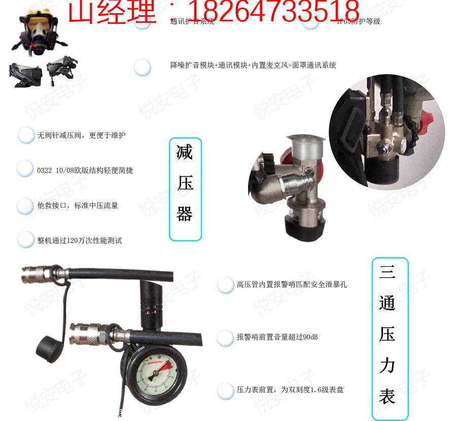 ·整套呼吸器重量只有10.4公斤(含3.8公斤气瓶),轻便设计方便活动和长时间工作要求