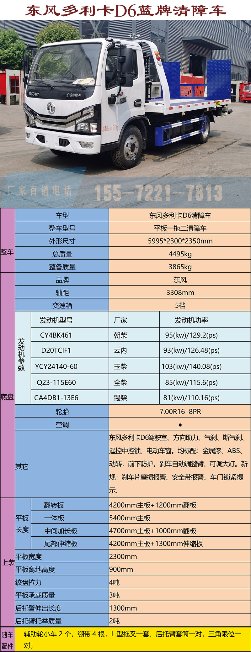 二汽东风蓝牌清障车-多利卡D6道路救援拖车2万可卖