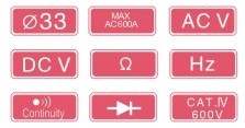 自动量程/电压,电阻量程单量程/导通,二极管检测和DUTY