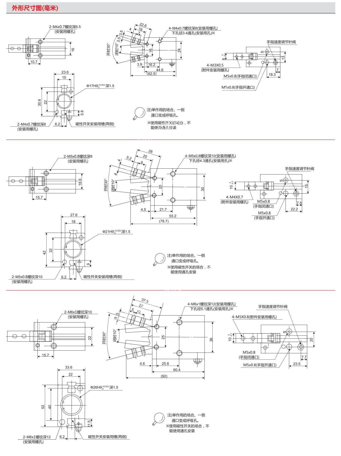 用途/应用领域气缸作为执行元件,气缸包含了众多类别,从驱动回位来分:单作用气缸,双作用气缸。从气缸尺寸标准和结构来分,包括:ISO 标准缸,薄型气缸,迷你气缸,导杆气缸。从气缸的活塞结构来分,包括:有杆气缸和无杆气缸。无杆气缸从驱动结构上可以分为:磁耦合驱动和机械连接驱动。不同类型的气缸适合于不同的使用场合,欢迎索取气缸驱动案例图档产品图片