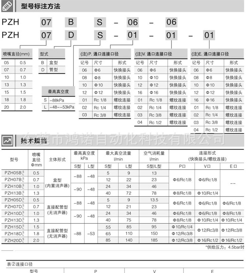 东莞鸿诺/HONOVAC 大流量管式迷你真空发生器批发ZH10DS-06-06-08