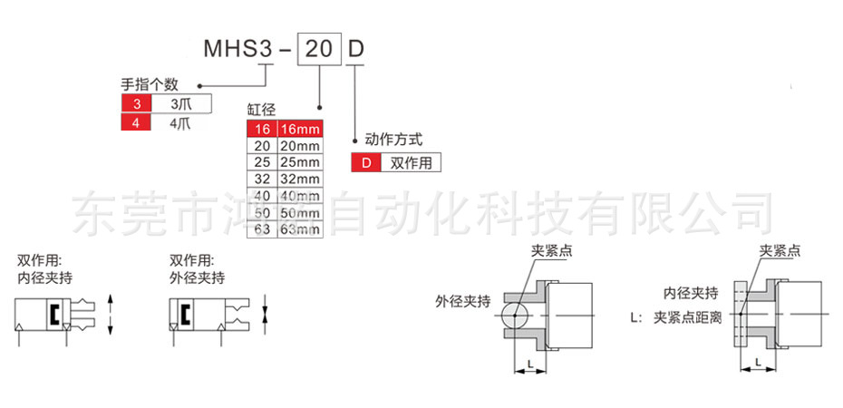鸿诺/HONNOR 气动手指 MHS2/3系列二爪三爪手指气爪 夹爪气缸厂家