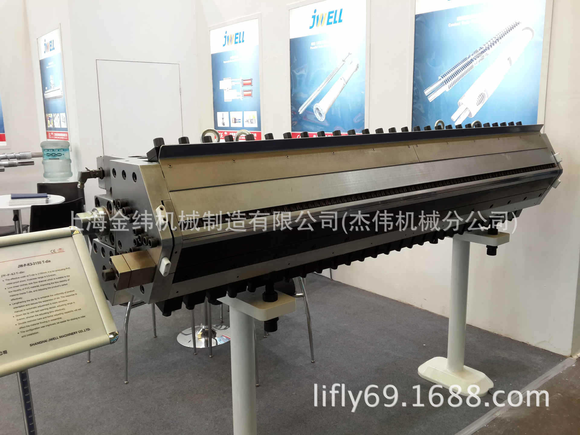 针对TPU产品越来越多的用途以及不同的使用要求,上海杰伟机械开发出TPU高低温多层共挤片材模具,该类模具采用特殊的内部隔热结构,以及优化的冷却方式,使多层复合时不同物料的温差达到60°C,并可以长时间的开机生产。由于采用了物料模腔内复合挤出,使该模具生产出的TPU复合片材不同复合层更均匀一致,制品厚薄偏差在百分之三的范围内。